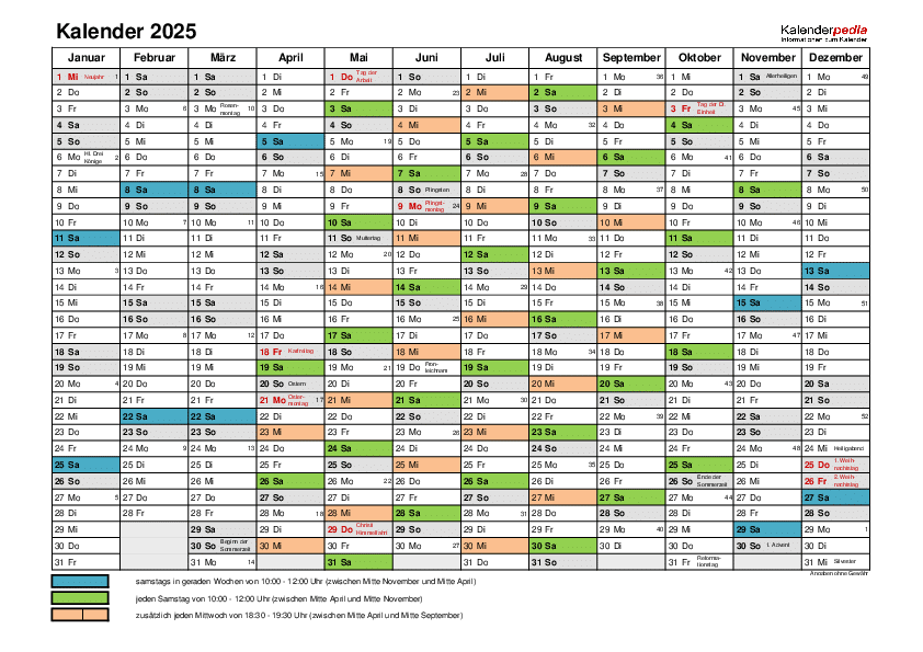 in Blau: Samstags in geraden Wochen von 10:00 -12:00 Uhr (zwischen Mitte November und Mitte April)